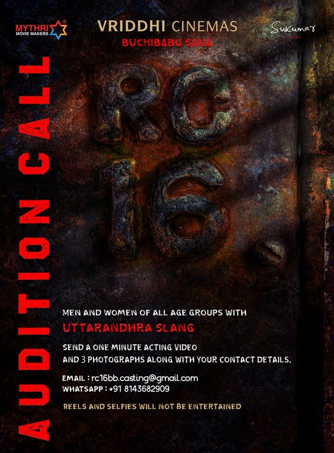 లేదంటే ఈ వాట్సాప్ నెంబర్ కైనా పంపించవచ్చు. రీల్స్ సెల్ఫీలు పరిశీలించబడవని ప్రకటనలో చెప్పారు కాబట్టి వీటిని పంపకండి. మెయిల్ ఐడి rc16bb.casting@gmail.com , వాట్సాప్ నెంబర్ 91 8143682909.