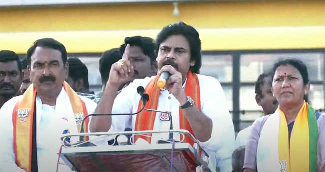 హనుమకొండ హాంటర్ రోడ్డులో నిర్వహించిన బీజేపీ విజయ సంకల్ప సభలో జనసేన చీఫ్ పవన్ కళ్యాణ్ పాల్గొన్నారు. ఈ సందర్భంగా ఆయన మాట్లాడుతూ…. ఆంధ్రాలో రౌడీలు రాజ్యామేలుతున్నారని మండిపడ్డారు. ఏపీలో గుండాల పాలన నడుస్తోందన్నారు. తెలంగాణ ధైర్యంతోనే తాను ఆంధ్రాలో రౌడీలను, ఫ్యాక్షనిస్టులను ఎదుర్కొంటున్నానని పేర్కొన్నారు.