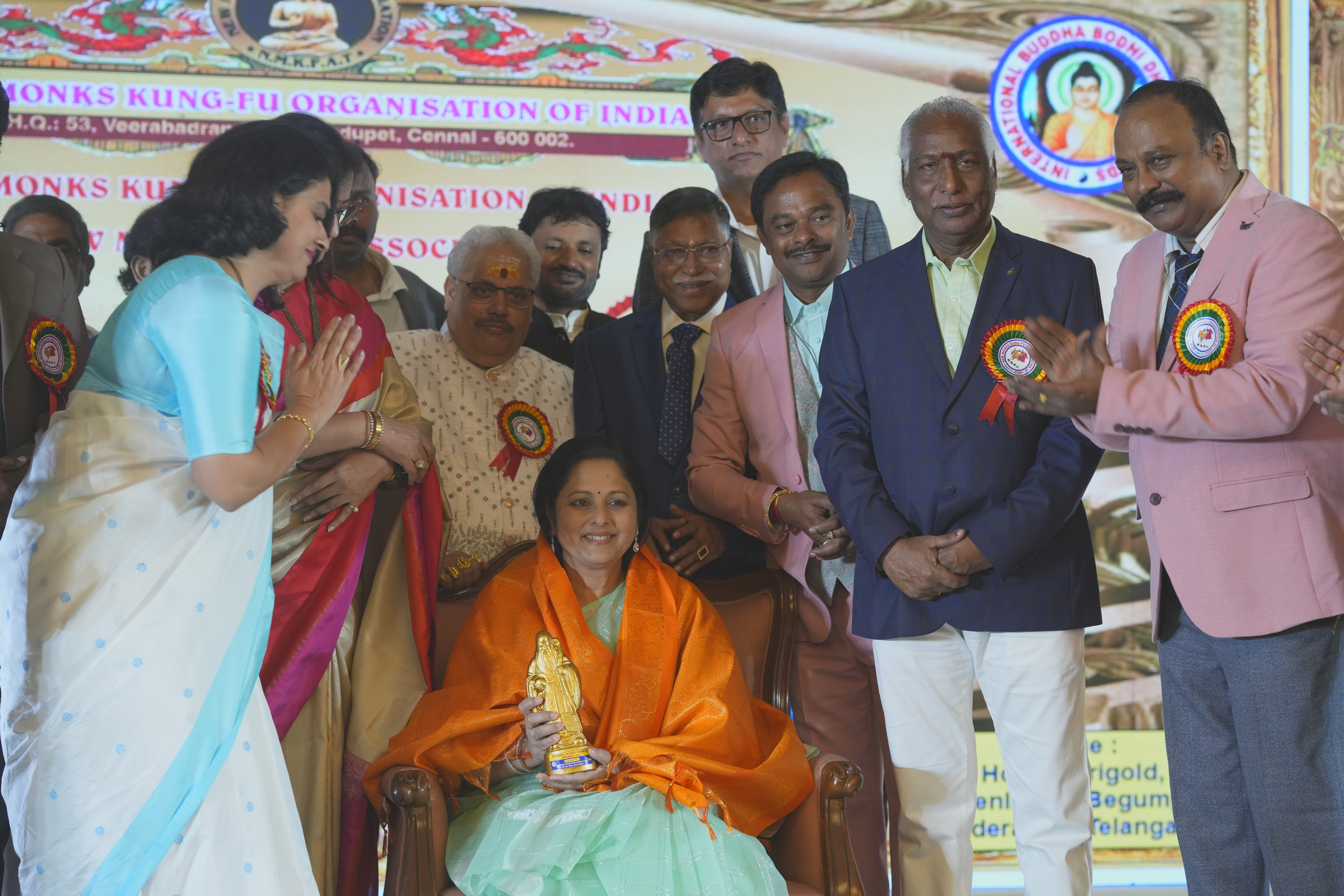 సభా వేదికపై బుద్ధ బోధి ధర్మ అవార్డులను అందజేశారు. అహోబల రామానుజ జీయర్ స్వామి, చిత్రగుప్త పీఠాధీశ్వర్ స్వామి సచ్చిదానంద పశుపతి, సినీ నటి పవిత్ర లోకేశ్, ‘మా’ వైస్ ప్రెడిటెంట్ మాదాల రవి, న్యూ మాంక్స్ కుంగ్ ఫూ ఆర్గనైజేషన్ జాతీయ అధ్యక్షుడు రాజ శిఖామణి, రాష్ట్ర అధ్యక్షుడు కుంచపు రాంబాబు, ఎంపీ, సినీ నటి సుమలత, జయసుధ, మురళీ మోహన్, శ్యాం సుందర్ గౌడ్, అడ్వకేట్ రేవతి, నేషనల్ లీగల్ అడ్వైజర్ దామోదర్ హాజరయ్యారు. రెడ్డి ల్యాబ్స్ డైరెక్టర్ వీఎన్ భాస్కర్ కు అవార్డు ప్రదానం చేశారు. వ్యాపారవేత్త జీ శ్రీనివాస్, తమిళనాడు పోలీస్ ధనశేఖరన్, ఎస్పీ విజయ్ సింగ్, ఏసీపీ రవికుమార్, నిర్మాత రాక్ లైన్ వెంకటేశ్, మాదాల రవి, శివబాలాజీ, టర్కీ కౌన్సిలర్ జనరల్ ఎమాంగ్ లకు అవార్డులను అందించారు. ఈ కార్యక్రమానికి మీడియా పార్టనర్ గా ఉన్న ‘రాష్ట్ర’ బ్రాడ్ కాస్టింగ్ చైర్మన్ వేమూరి శ్రీరామ్ పవన్ కుమార్ కి బుద్ధ బోధి ధర్మ అవార్డును అందజేశారు.