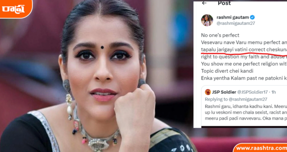 జనసేన అధ్యక్షడు పవన్ కళ్యాణ్ గతంలో సనాతన ధర్మం గొప్పతనాన్ని వివరిస్తూ మాట్లాడారు. దానికి సంబంధించిన వీడియోని రెండు రోజుల క్రితం షేర్ చేశారు రష్మి. దీంతో ఈమెను కొందరు టార్గెట్ చేశారు. రష్మి సినిమాలు, సనాతన ధర్మం, ఇంకా అనేక అంశాలపై ప్రశ్నించారు. దీనిపై స్పందించిన ఆమె.. నెటిజన్ల కామెంట్లకు ధీటుగా బదులిచ్చారు. దేవుడిని ఎందుకు నమ్మరని నేనెవరినీ అడగలేదు.. నాకు నచ్చిన ధర్మాన్ని నేను పాటిస్తాను.. మీకు వచ్చిన సమస్య ఏంటి? అంటూ ఫుల్ ఫైరయ్యారు.