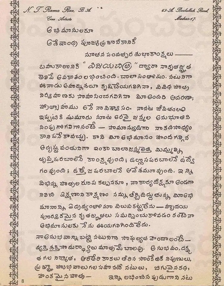 మంగళగిరిలో సబ్ రిజిస్టర్ ఉద్యోగాన్ని కూడా ఎన్టీఆర్ పొందారు. చిత్రలేఖనంలో కూడా రాష్ట్రస్థాయి బహుమతులని అందుకున్నారు ఎన్టీఆర్. తాజాగా ఎన్టీఆర్ చేతిరాతకు సంబంధించిన ఫోటో ఒకటి సోషల్ మీడియాలో వైరల్ అవుతోంది. ఎన్టీఆర్ నటనలాగే ఆయన అక్షరాలు కూడా అద్భుతంగా ఉన్నాయి.